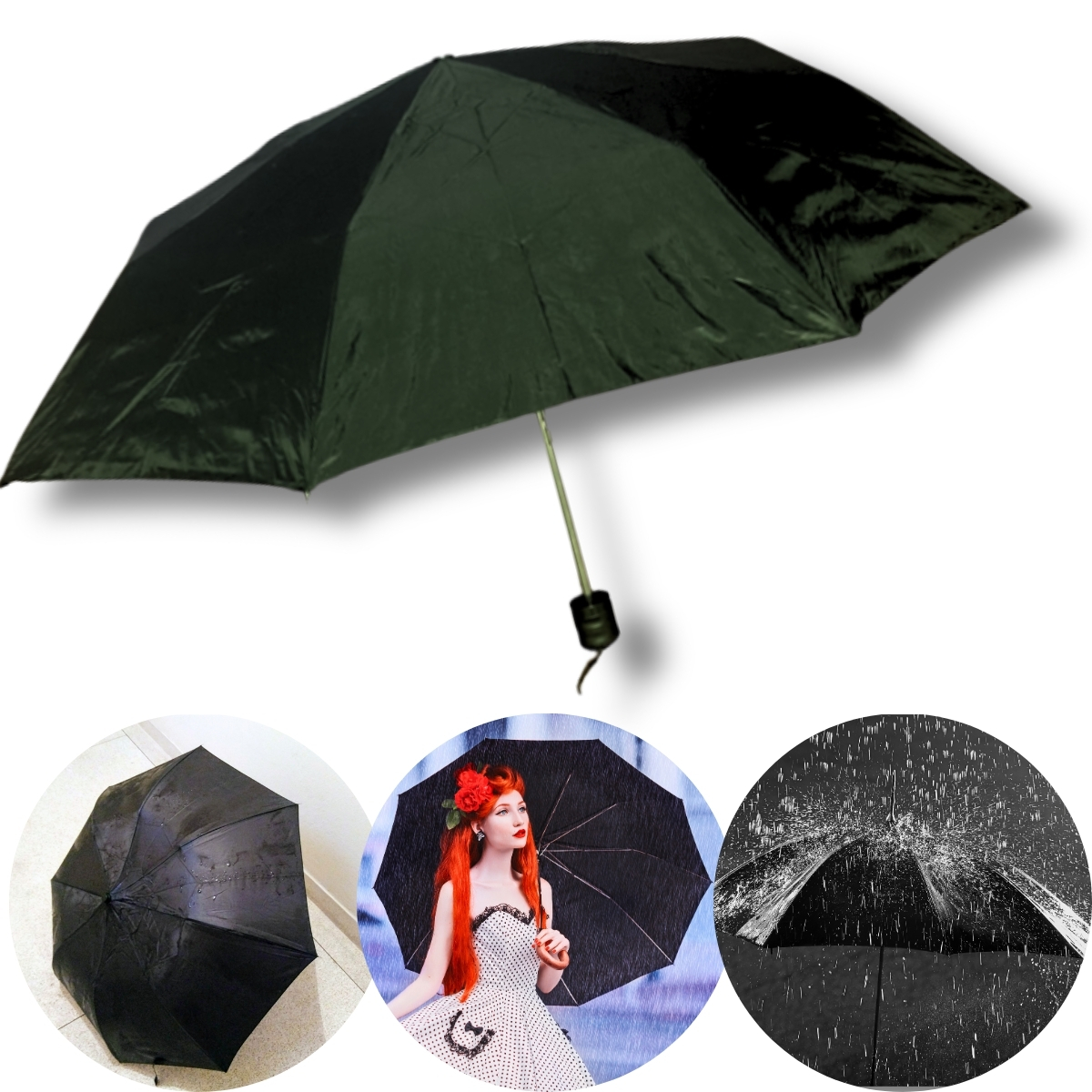 1x Guarda-Chuva Poliéster Resistente Telescópico Preto