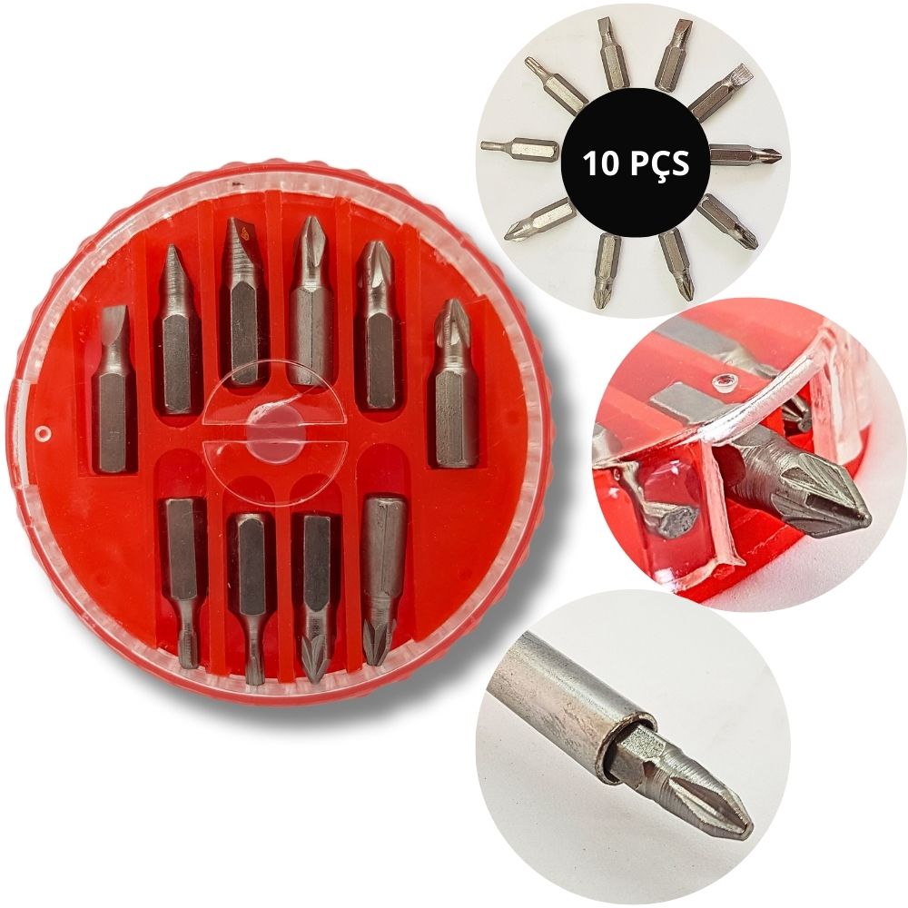 1x Jogo 10 Bits para Parafusadeira com estojo Fenda Philips Torx